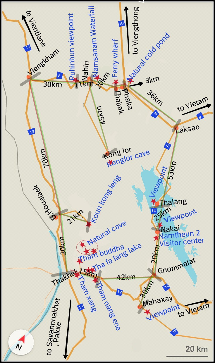 ④ 껑러 동굴(Kong Lor Cave, ຖ້ຳກອງລໍ) 45.3km