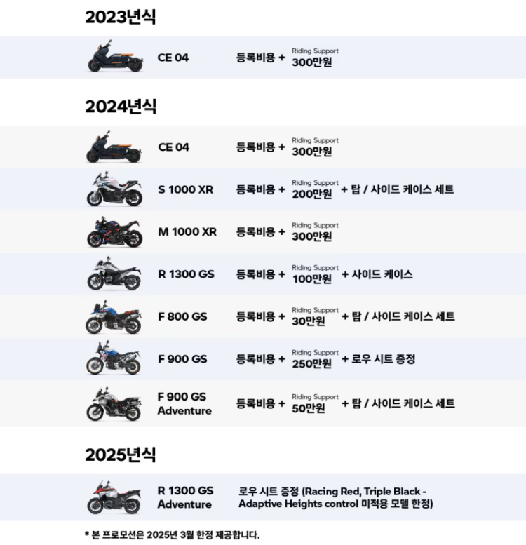 뉴스&소식 분류 BMW모토라드 3월 프로모션 작성자 정보 LA다저스쪽지보내기 자기소개 작성자로 검색 작성글보기쪽지보내기 자기소개 작성자로 검색 작성글보기 작성 작성일 2025.03.10 17:15 컨텐츠 정보 396 조회 2 댓글 2 RPM 목록 관리 글검색 본문 세일즈 프로모션 진행하네요 관심있으신 분들 보세요 출처-bmw모토라드 2 추천 SNS 공유 신고 관련자료 이전 트라이엄프 3월 프로모션+의류 세일 작성일 2025.03.10 17:21 다음 CFmoto 450SR S 스페셜에디션 국내 출시 - 전세계 451대, 국내 6대 작성일 2025.03.10 17:10 댓글 2 S1000RR님의 댓글 S1000RR쪽지보내기 자기소개 작성자로 검색 작성글보기쪽지보내기 자기소개 작성자로 검색 작성글보기 작성일 25-03-10 정보추 신고 RPM 1 정보추 아빠이글이님의 댓글 아빠이글이쪽지보내기 자기소개 작성자로 검색 작성글보기쪽지보내기 자기소개 작성자로 검색 작성글보기 작성일 25-03-27 늘 안라무복 하세요~ 신고 RPM 0 늘 안라무복 하세요~ 로그인한 회원만 댓글 등록이 가능합니다. 목록