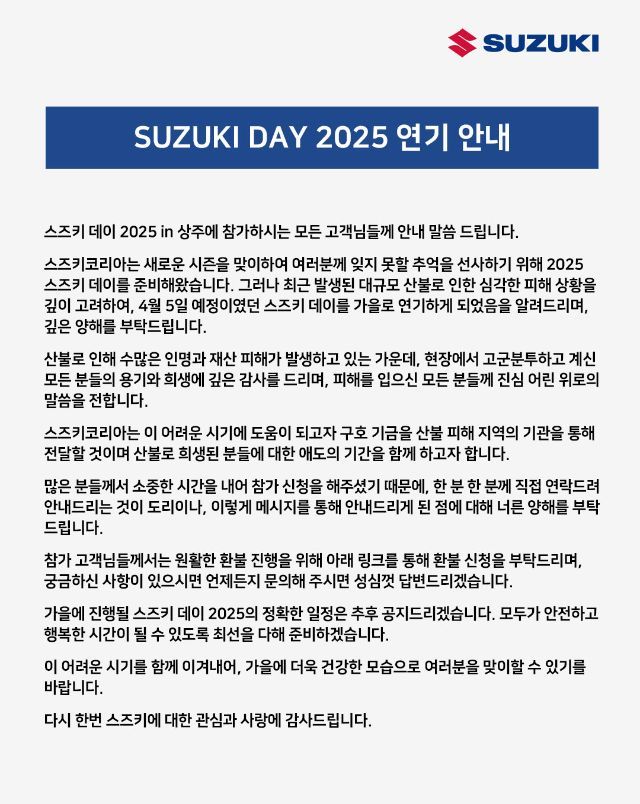 스즈끼데이 연기 소식 입니다 작성자 정보 아빠이글이쪽지보내기 자기소개 작성자로 검색 작성글보기쪽지보내기 자기소개 작성자로 검색 작성글보기 작성 작성일 2025.03.28 12:00 컨텐츠 정보 402 조회 5 댓글 0 RPM 목록 본문 아쉽지만 틀리지 않은 생각 같아서 아듀 합니나 0 추천 SNS 공유 신고 관련자료 이전 <코리아 모터스쿨> 모터사이클 짐카나 경기 / 체험 / 교육 작성일 2025.03.28 15:12 다음 강릉 카페점마 확장 재오픈 작성일 2025.03.28 11:51 댓글 5 문성장님의 댓글 문성장쪽지보내기 자기소개 작성자로 검색 작성글보기쪽지보내기 자기소개 작성자로 검색 작성글보기 작성일 25-03-28 참 안타깝습니다 신고 RPM 0 참 안타깝습니다 inPARIS님의 댓글 inPARIS쪽지보내기 자기소개 작성자로 검색 작성글보기쪽지보내기 자기소개 작성자로 검색 작성글보기 작성일 25-03-28 안타깝네요 그래도 스즈키가 잘 판단한것같네요 좋은 정보 감사합니다 신고 RPM 0 안타깝네요 그래도 스즈키가 잘 판단한것같네요 좋은 정보 감사합니다 S1000RR님의 댓글 S1000RR쪽지보내기 자기소개 작성자로 검색 작성글보기쪽지보내기 자기소개 작성자로 검색 작성글보기 작성일 25-03-28 대단한 결정이네요 신고 RPM 0 대단한 결정이네요 Ramy님의 댓글 Ramy쪽지보내기 자기소개 작성자로 검색 작성글보기쪽지보내기 자기소개 작성자로 검색 작성글보기 작성일 25-03-28 옆집 이악물고 진행하든뎅 신고 RPM 0 옆집 이악물고 진행하든뎅 바람길님의 댓글 바람길쪽지보내기 자기소개 작성자로 검색 작성글보기쪽지보내기 자기소개 작성자로 검색 작성글보기 작성일 25-03-31 스즈키 판단 좋네요...^^ 신고 RPM 0 스즈키 판단 좋네요...^^ 로그인한 회원만 댓글 등록이 가능합니다. 목록