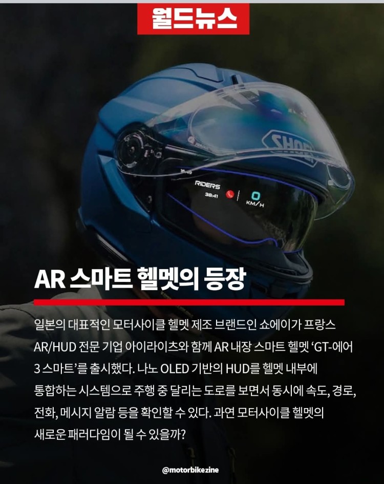 뉴스&소식 분류 스마트 헬멧의 역사의 시작이 될것 같은~ 작성자 정보 아빠이글이쪽지보내기 자기소개 작성자로 검색 작성글보기쪽지보내기 자기소개 작성자로 검색 작성글보기 작성 작성일 2026.01.09 18:31 컨텐츠 정보 12 조회 1 댓글 1 RPM 목록 본문 드디에 HUD헬멧이 현실 시판 시작하는 멋진 정보가 있어 올려봅니다가격은 약 176만원대로 알려져 있는데작년에 망설렸던 옐멧 구매를 또 미뤄봐야 하나 싶은기대감이 생기네요 1 추천 SNS 공유 신고 관련자료 다음 이륜차 번호판 변경 소식 입니다 작성일 2026.01.09 16:17 댓글 1 멀티캠님의 댓글 멀티캠쪽지보내기 자기소개 작성자로 검색 작성글보기쪽지보내기 자기소개 작성자로 검색 작성글보기 작성일 26-01-09 운전에 방해될거라는 이야기들도 있던데 차에 HUD도 또한 처음에 이야기들이 많았음. 하지만 지금은 HUD없으면 운전못해요 신고 RPM 1 운전에 방해될거라는 이야기들도 있던데 차에 HUD도 또한 처음에 이야기들이 많았음. 하지만 지금은 HUD없으면 운전못해요 로그인한 회원만 댓글 등록이 가능합니다. 목록