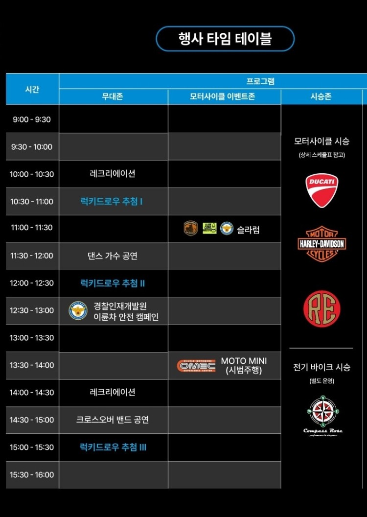 이벤트&행사 분류 K.moto 페스타 일정 공지 작성자 정보 아빠이글이쪽지보내기 자기소개 작성자로 검색 작성글보기쪽지보내기 자기소개 작성자로 검색 작성글보기 작성 작성일 2026.04.28 21:42 컨텐츠 정보 18 조회 2 댓글 0 RPM 목록 본문 올해는 푸드코트 쿠폰이 있네요올해는 작년 보다 재미있을것 같아요 RPM 추천 SNS 공유 × 게시글을 원하는 채널로 공유해보세요. talk f b 관련자료 이전 DJI 마이크 mini 신상 출시 작성일 2026.04.28 22:47 다음 2026 스즈끼데이 작성일 2026.04.28 19:24 댓글 2 고양이보고가님의 댓글 고양이보고가쪽지보내기 자기소개 작성자로 검색 작성글보기쪽지보내기 자기소개 작성자로 검색 작성글보기 작성일 26-04-28 케모페에서 뵙는건가요!!!!! 신고 RPM 0 케모페에서 뵙는건가요!!!!! 산쟁이님의 댓글 산쟁이쪽지보내기 자기소개 작성자로 검색 작성글보기쪽지보내기 자기소개 작성자로 검색 작성글보기 작성일 26-04-28 경품도 많네요 ㅎ 신고 RPM 0 경품도 많네요 ㅎ 로그인한 회원만 댓글 등록이 가능합니다. 목록