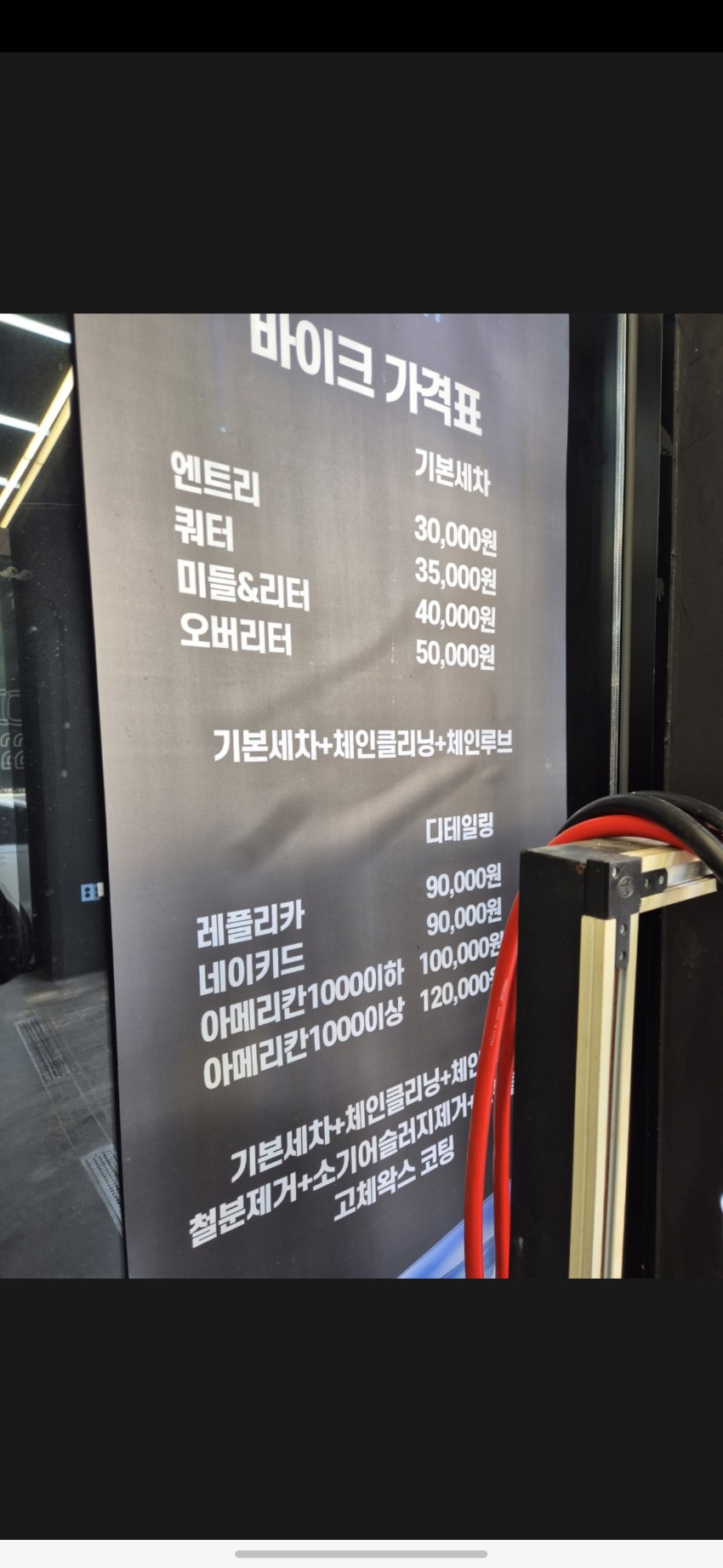 자유게시판 분류 바이크 세차장 299워시 살짝 추천해봅니다 작성자 정보 가을까지만탐쪽지보내기 자기소개 작성자로 검색 작성글보기쪽지보내기 자기소개 작성자로 검색 작성글보기 작성 작성일 2026.04.09 16:40 컨텐츠 정보 81 조회 3 댓글 0 RPM 목록 본문 바이크 세차나 디테일링 생각 있으시면 한번 가볼만 한것 같아요 이번에 맡겼을때 꽤 만족했어서... 대충 가격은 아래 사진 보시면 크게 부담스럽지 않으실듯 멍청캡쳐 죄송합니다 RPM 추천 SNS 공유 × 게시글을 원하는 채널로 공유해보세요. talk f b 관련자료 이전 신형번호판 사실상 머드가드 수준이네요 작성일 2026.04.09 16:47 다음 ㅋㅋㅋㅋㅋㅋㅋㅋ이게 뭐라고 웃기네 작성일 2026.04.09 16:26 댓글 3 부리님의 댓글 부리쪽지보내기 자기소개 작성자로 검색 작성글보기쪽지보내기 자기소개 작성자로 검색 작성글보기 작성일 26-04-09 화성은 좀 먼데 아쉽 신고 RPM 0 화성은 좀 먼데 아쉽 R3탈래님의 댓글 R3탈래쪽지보내기 자기소개 작성자로 검색 작성글보기쪽지보내기 자기소개 작성자로 검색 작성글보기 작성일 26-04-09 어딜가나 9~10만 초반대입니다 잘해주는곳 찾기가 어렵죠 신고 RPM 0 어딜가나 9~10만 초반대입니다 잘해주는곳 찾기가 어렵죠 아빠이글이님의 댓글 아빠이글이쪽지보내기 자기소개 작성자로 검색 작성글보기쪽지보내기 자기소개 작성자로 검색 작성글보기 작성일 26-04-09 Cꉂ(˶ˊᗜˋ˶) 신고 RPM 0 Cꉂ(˶ˊᗜˋ˶) 로그인한 회원만 댓글 등록이 가능합니다. 목록