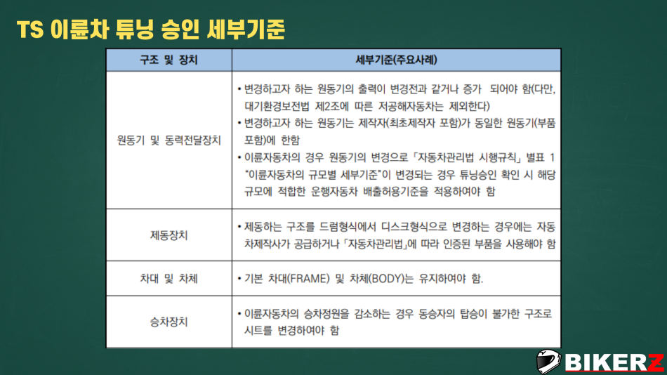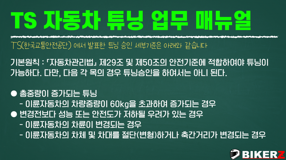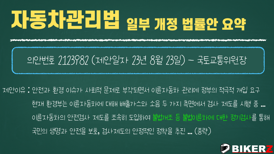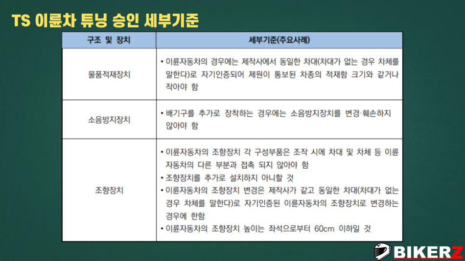 또한 라이더 분들이 가장 걱정했던 이륜차 튜닝과 관련된 사안도 어느 정도 가닥이 잡혔는데