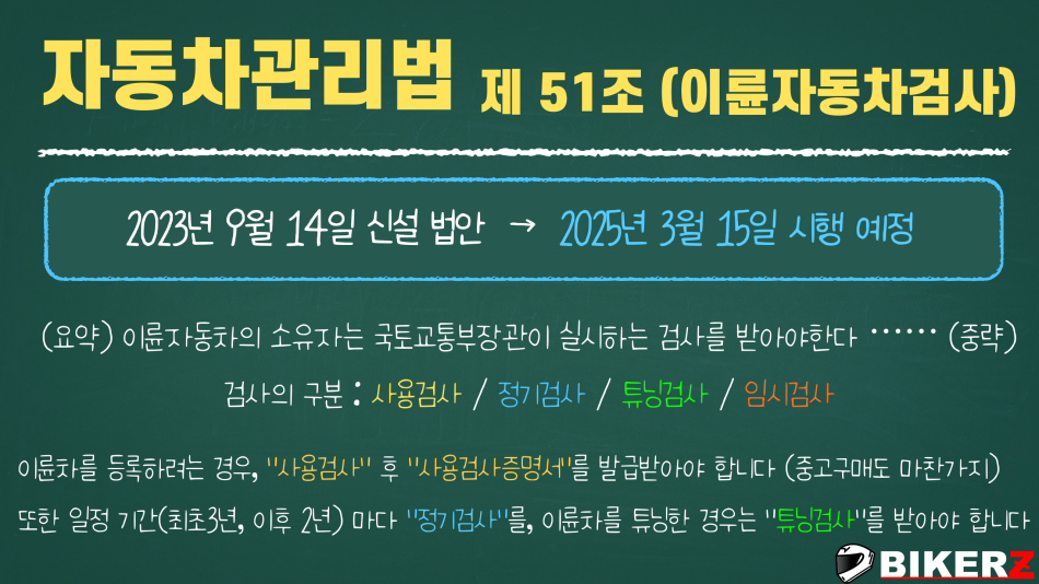 2025년 3월 15일 이륜자동차 관리법 개정 예정