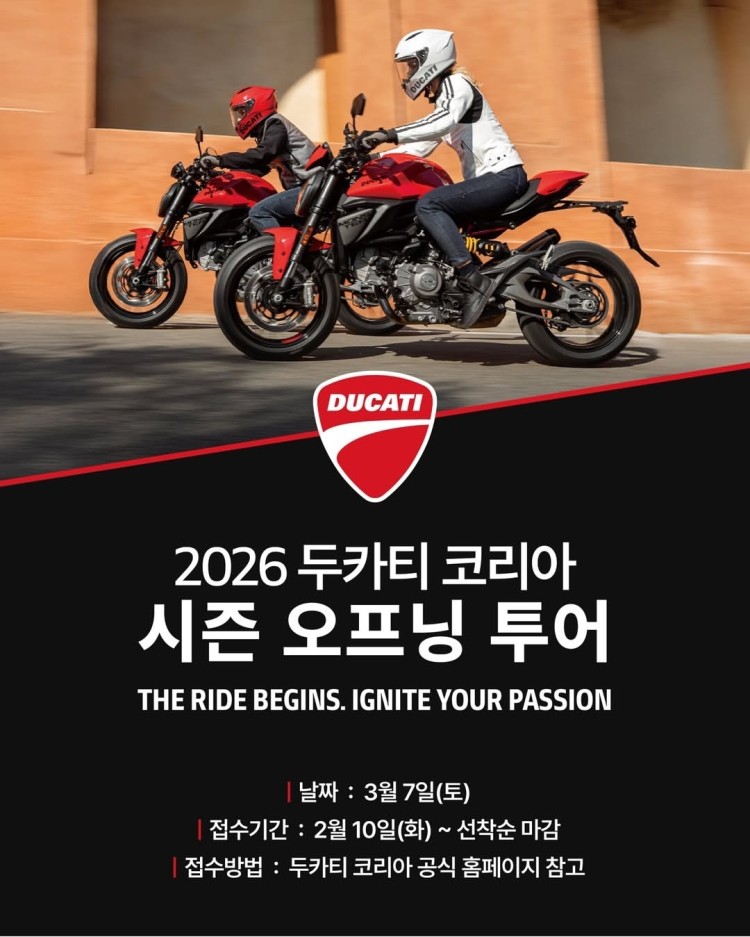 이벤트&행사 분류 두카티 시즌 오프닝 소식 입니다 작성자 정보 아빠이글이쪽지보내기 자기소개 작성자로 검색 작성글보기쪽지보내기 자기소개 작성자로 검색 작성글보기 작성 작성일 2026.03.03 20:14 컨텐츠 정보 16 조회 0 RPM 목록 관리 글검색 본문 빠른 신청을 결정하셔야 겠어요3월7일 이번주 네요 0 추천 SNS 공유 신고 관련자료 다음 까페보스 & KYT 행사 작성일 2026.02.16 21:08 댓글 0 등록된 댓글이 없습니다. 로그인한 회원만 댓글 등록이 가능합니다. 목록